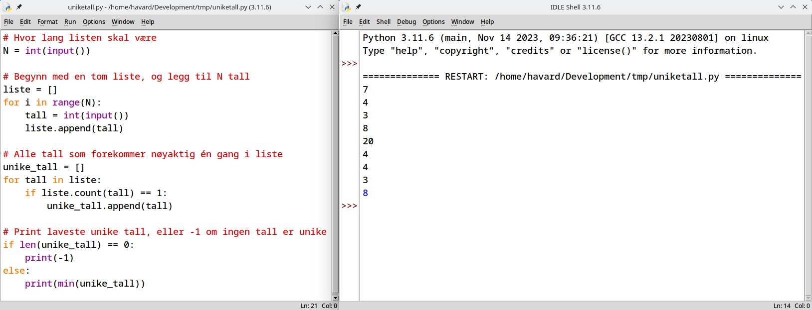 Det eneste vi må huske på er at det potensielt ikke er noen unike tall, slik som i eksempel 2. Da vil unike_tall være en tom liste,