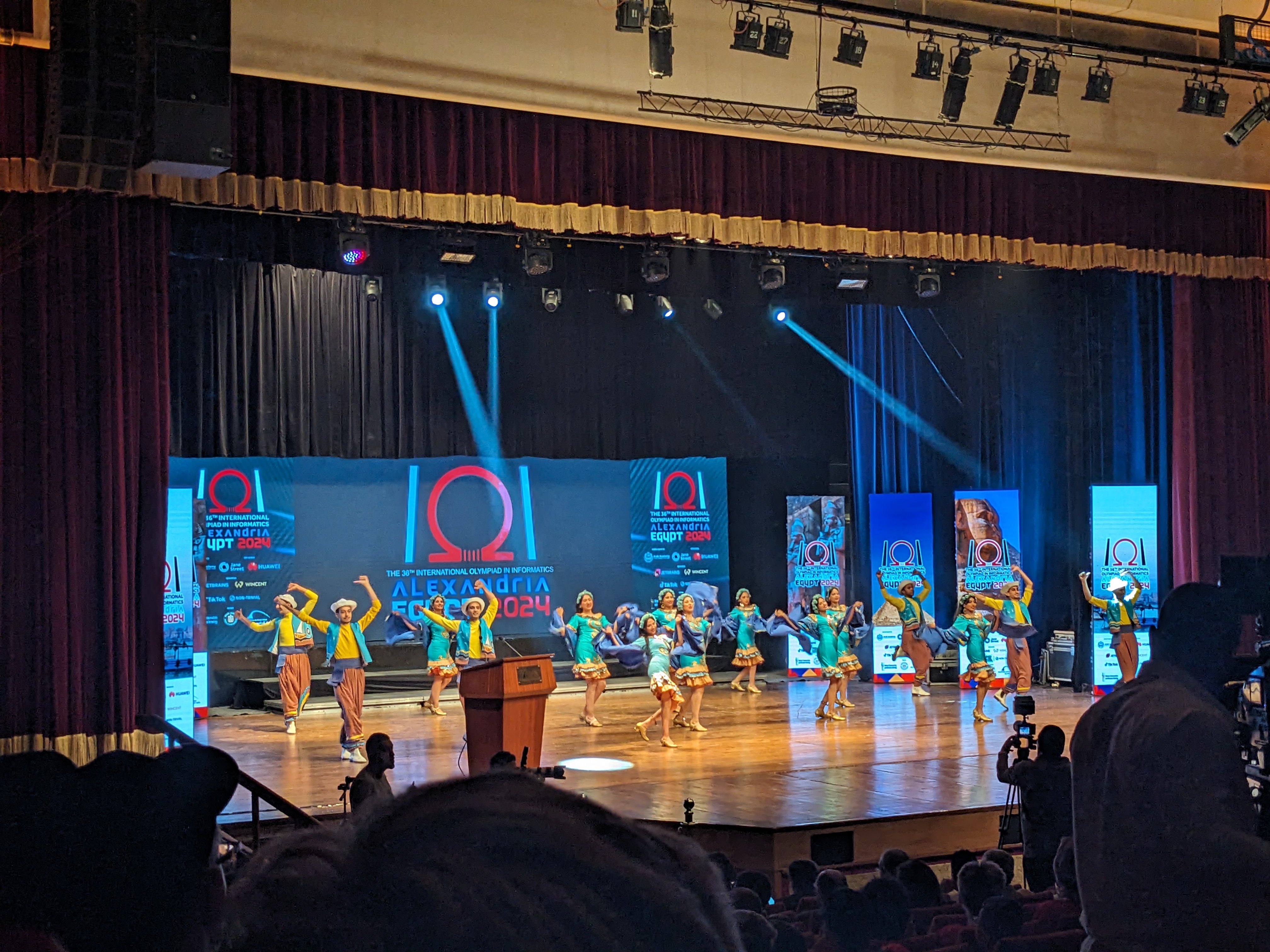 Årets IOI startet med en stressende reise. Flyet vårt fra Oslo til Istanbul ble forsinket slik at vi ikke rakk det neste flyet til Alexandria (her tar laglederne selvkritikk for å planlegge en litt optimistisk reiserute.) Dette betyde at vi måtte gjøre litt endringer: vi fikk ombokket billettene våre til Kairo, tidlig morgen etterpå og prøvde å finne noen tomme benker å sove på i flyplassen. Fremme i Kairo mått vi ordne taxi helt til Alexandria. Ettersom første dagen av IOI allerede var i gang betydde dette at vi ikke kom til å rekke øvingskonkuransen, men det var tid til å rekke åpningsseremonien ved biblioteket i Alexandria. Det gav også muligheten for å si til taxisjåføren ved flyplassen i Kairo (3-4t unna), “vi skal til Alexandria, biblioteket i Alexandria” og få en mildt overasket respons.